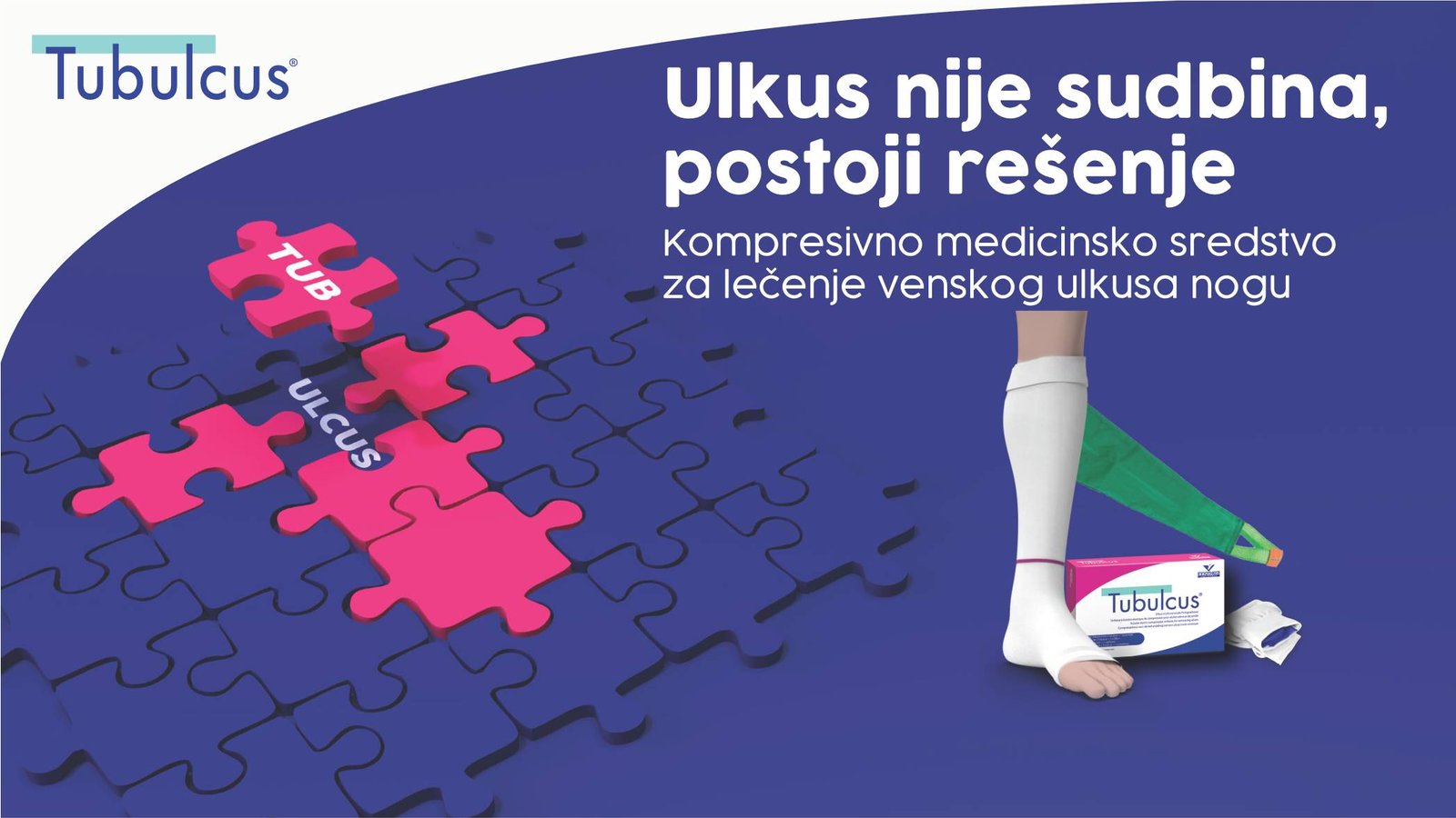 Tubulcus® je tubularno kompresivno medicinsko sredstvo bez pete i sa otvorenim stopalom od dvosmerno tkanog elastičnog tekstila, dizajniran za lečenje venskog ulkusa nogu.